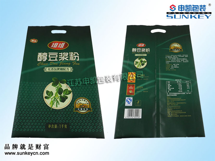 材质:(可根据客户需求定制)说明:纯豆浆粉包装材质一般是由PET/AL/PE组成,经过印刷-检品-复合-制袋等多层工艺。